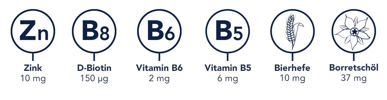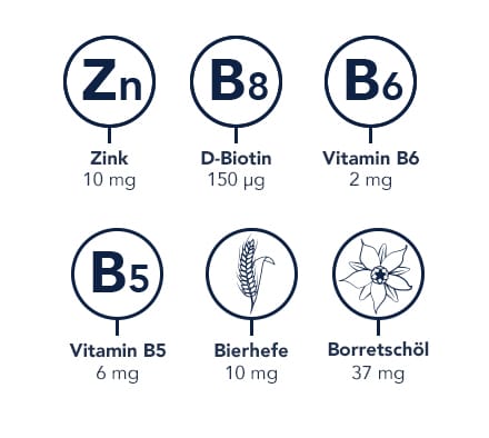 Als Spurenelement ist es für die Keratinsynthese und das Wachstum von Haaren und Nägeln unerlässlich. Außerdem bewahrt es die Haarzwiebeln vor vorzeitiger Alterung.