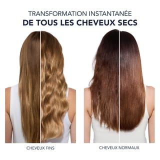 Cet elixir de nutrition à la texture légère nourrit et transforme vos cheveux en une matière intensément souple et soyeuse, sans les alourdir.