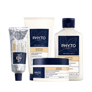 Das NOURISHING Shampoo das trockenem und sehr trockenem Haar Geschmeidigkeit und Nährstoffe verleiht. Die NOURISHING Pflegespülung die trockenes und sehr trockenes Haar entwirrt und nährt, ohne es zu beschweren. Die NOURISHING Maske, die trockenes und sehr trockenes Haar intensiv pflegt. Die PHYTO 7 Tage-Creme, die trockenem Haar die tägliche Dosis an Nährstoffen liefert, die es braucht.