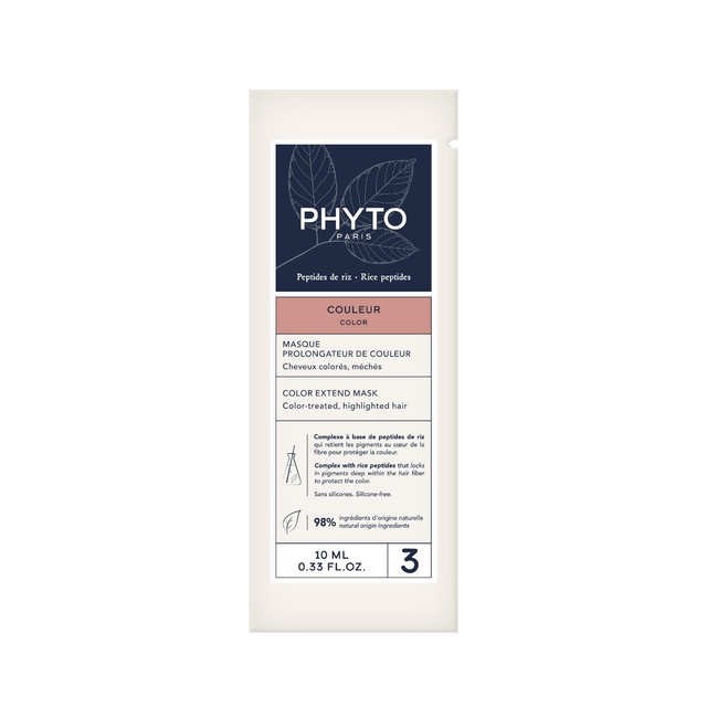 DIESE VERPACKUNG ENTHÄLT: 1 Flasche Entwicklermilch 1.69 fl. oz. - 1 Tube Farbcreme 1.69 fl. oz. - 1 PHYTO PARISCOLOR Maske 0.40 fl.oz. - 1 Beipackzettel - 1 Paar Handschuhe.