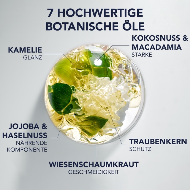 Dieses Pflegeöl ist ein wahres , Nährstoffelixier, das trockenes, strapaziertes Haar intensiv geschmeidig und seidig macht. Seine leichte Textur mit einem betörenden, spritzigen Duft umhüllt und pflegt das Haar, ohne es zu beschweren. Eine vielseitige Formel, angereichert mit 7 wertvollen Pflanzenölen: Kamelie, Jojoba, Haselnuss, Kokosnuss, Macadamia, Traubenkern und Wiesenschaumkraut.